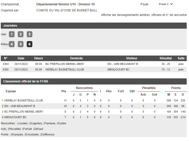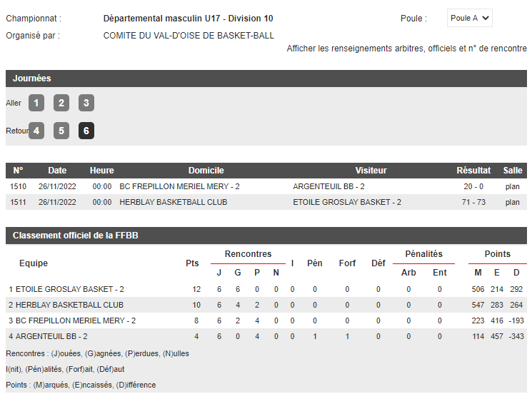Voici les différents classements suite à la premières séries de matchs
